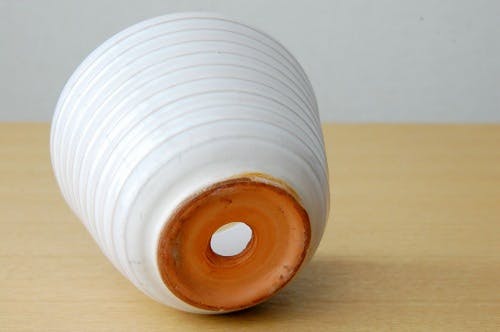 スウェーデンで見つけた陶器の植木鉢(ホワイト・横縞模様)です。