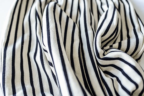アイボリー色に黒の配色のクラシックなストライプの柄は、柄物でありながら普段の服装と合わせやすく、女性らしい大人な印象に見せてくれるんです。
