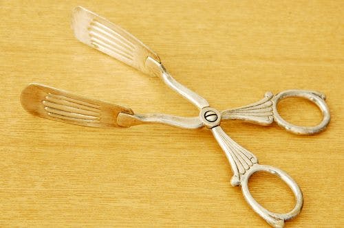 ティータイムにこの道具を使って、角砂糖などをはさむような形でコーヒーや紅茶の上に落とすことができます。
