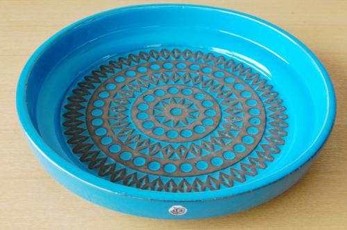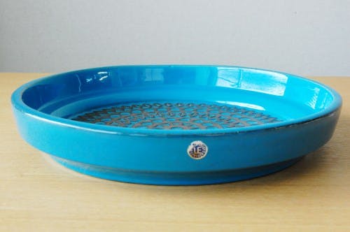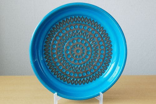 ウプサラエクビイ社の最後のデザイナーとも言われている、Mari Simmulsonが手掛けた、美しい空色の陶器のラウンドトレイが入荷いたしました!