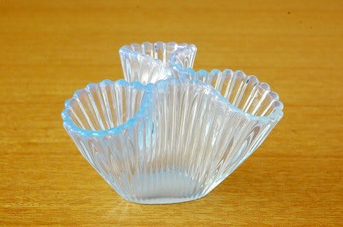 淡い水色のガラスも、風に揺れるスカートの裾のようなひらひらとした形も、乙女心をくすぐってくれます。