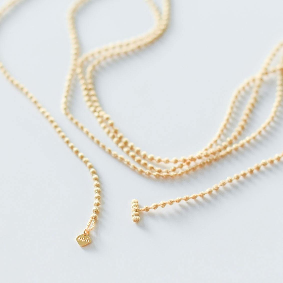 「糸」で作られたネックレスは、重さ約7g。肩こり持ちのわたし優しい、つけていることを忘れてしまう軽さです。