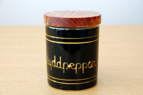 スウェーデンで見つけた木蓋付きスパイスポット(少々難あり)(スパイシーペッパー)です。
