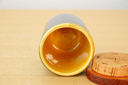 ブラックのポットにイエローの文字とラインがよく映えた、素朴さとかっこよさを併せ持ったお品です。