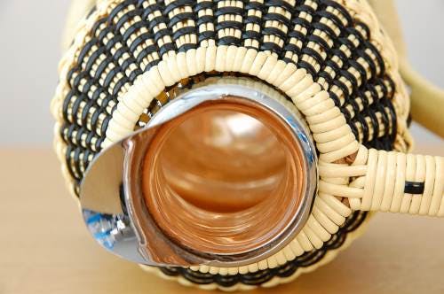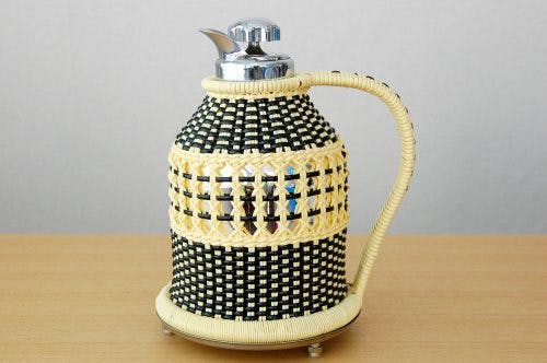 北欧雑貨を紹介する書籍や雑誌などにのることも多いこのビニールストロー素材を編んだカバーが付いている魔法瓶は大変人気の高いアイテムです。
