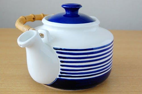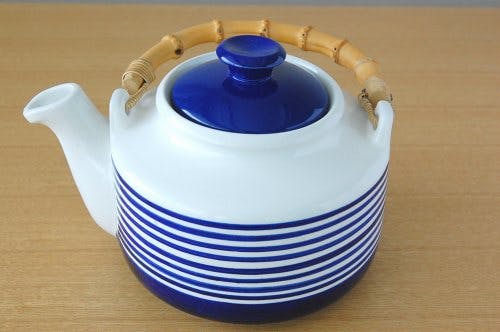 急須のようなフォルムといい、竹の持ち手の風合いといい、どこか和のテイストを感じさせるデザインですので、日本の食卓の上でもすんなりと溶け込んでくれるとお品かと思います。