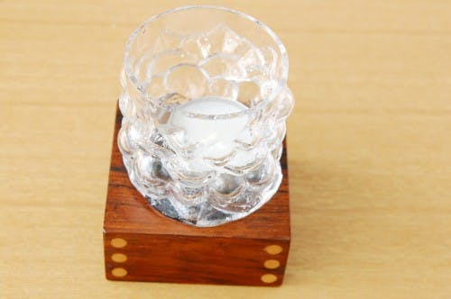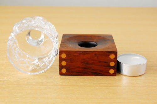 状態 :ガラス部分にも傷みは見られず、木製の台部分もヴィンテージ品としては良好に保たれています。(ティーライトキャンドルが一個付属しています)