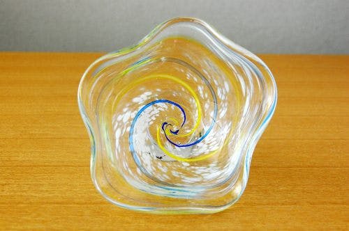 うずまきのようにガラスに溶け込んだ模様が大変美しい一品です。