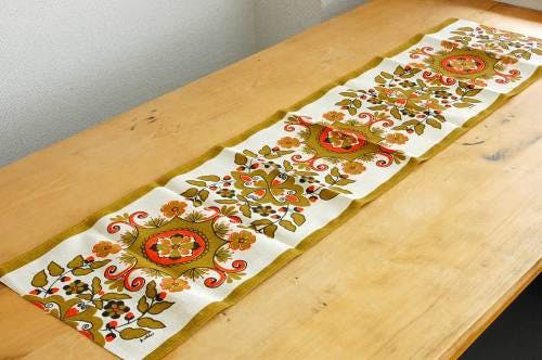 スウェーデンで見つけたテーブルランナー(オレンジの花模様)です。