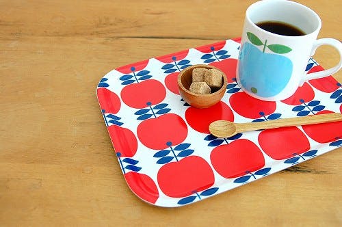 こちらのミニトレーも食卓の上を盛り上げてくれそうなアイテムです。トリコロールの色合いも、トレーいっぱいに並んだリンゴのモチーフも本当に可愛らしくて、使わない時もキッチンの壁に飾るようにして立て掛けておきたくなりますね!