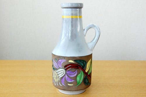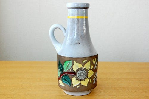 花瓶の下部に描かれた黄色や薄紫色のお花模様が本当に美しい!落ち着きのなかにも、パッとした華やかさがある・・・まさにマリ・シミュルソンならではって思います。