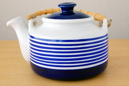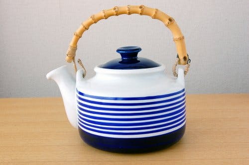 急須のようなフォルムといい、竹の持ち手の風合いといい、どこか和のテイストを感じさせるデザインですので、日本の食卓の上でもすんなりと溶け込んでくれるとお品かと思います。