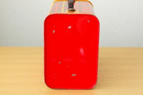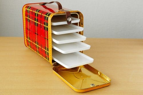 デンマークで見つけた古いピクニック缶ケース(赤チェック)です。