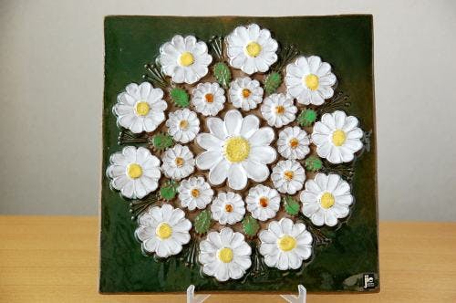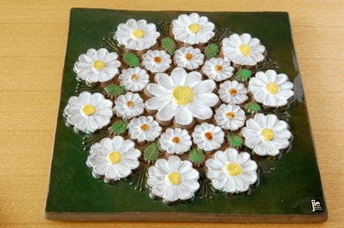 スウェーデン/JIE釜/陶板の壁掛け(白いお花)です。