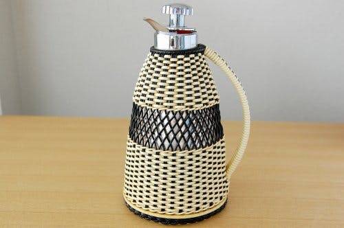 北欧雑貨を紹介する書籍や雑誌などにのることも多いこのビニールストロー素材を編んだカバーが付いている魔法瓶は大変人気の高いアイテムです。