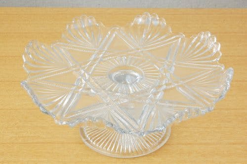 スウェーデンで見つけたガラスのケーキスタンドです。