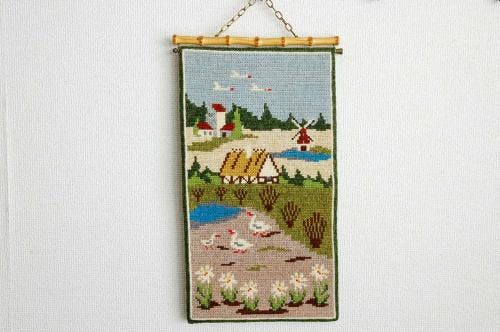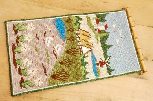スウェーデンで見つけたタペストリー(風車とあひる)です。