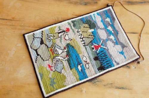 と思ってつくづく眺めていたら、もしかしたらこれは北欧で生まれた童話「ニルスの不思議な旅」をモチーフに作られたタペストリーなのかもと思いました。これはあくまで憶測ですが、もしかしたら、そんな景色かと思います。