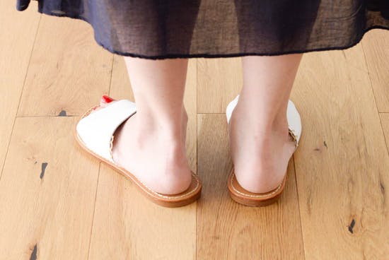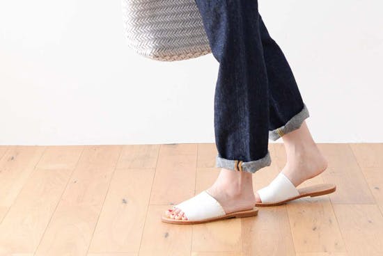 楽チンなのに女性らしさ漂う、革のフラットサンダル