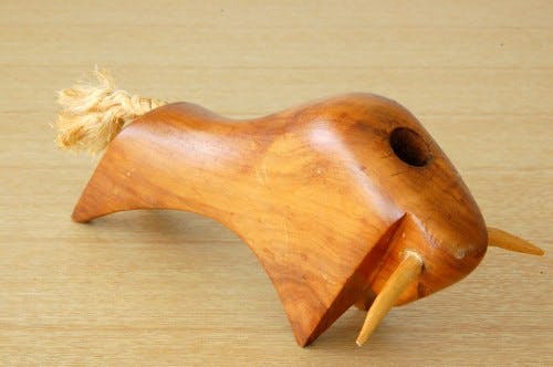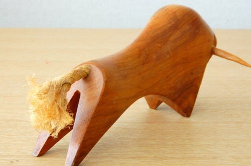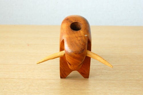 スウェーデンで見つけた木製の闘牛の形をしたペン立て(オブジェ)です。