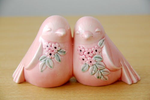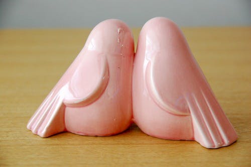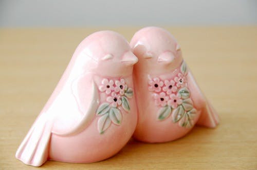 北欧雑貨ファンの中でもコレクターが大変多い、Rosa Ljungデザインの陶器の小鳥オブジェ(2羽・ピンク)です。