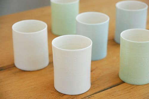 また時には素朴な草花を活ける花器として食卓の上に飾ってみたり、ペン立てにしたり・・・カップとして飲み物を注いでもとっても素敵です。どのコースター、マットと合わせようかと考えるだけでも楽しい時間です。
