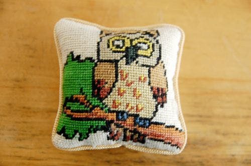 枝にとまったフクロウがユニークなこちらのピンクッション。使っていくほどに愛着が湧いてしまうようなアイテムです。