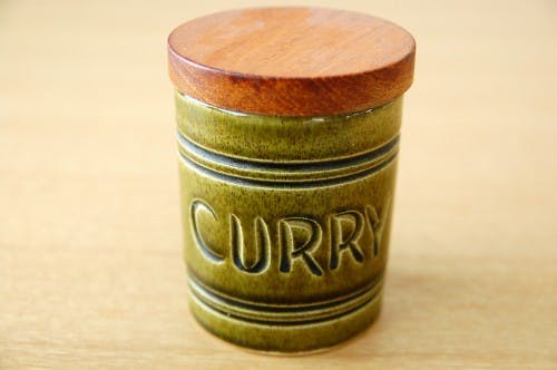 スウェーデンで見つけた木蓋付きスパイスポット(CURRY)(少々難あり)です。