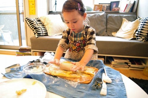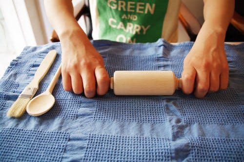 大人用の道具と同じようにしっかり作ってありますので、ママと並んでほこらしげに生地をのばしたりしている姿が目に浮かびます。