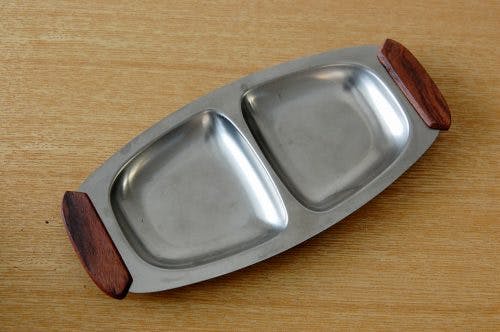 こちらは2分割のデザインになっているので、ちょっとした薬味やおつまみなどをそれぞれの窪みに入れて食卓に運んでも絵になりそうですし、インテリアアイテムとしてアクセサリーなどの小物入れとしてお使いになっても素敵だと思います。
