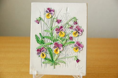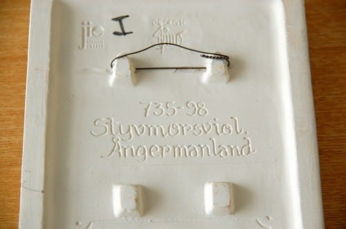 スウェーデンの釜、JIE Gantoftaの可愛らしい陶板の壁掛け(白・パンジー)です。