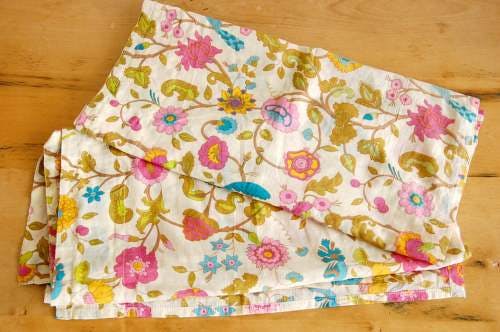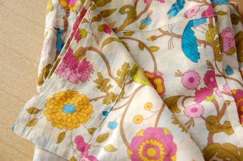 クリーム色の布地にパステル調のお花がいっぱいに描かれています。こんな布地のワンピースがあったら着てみたいなと思わせる、すごく素敵なテキスタイルでもあります。