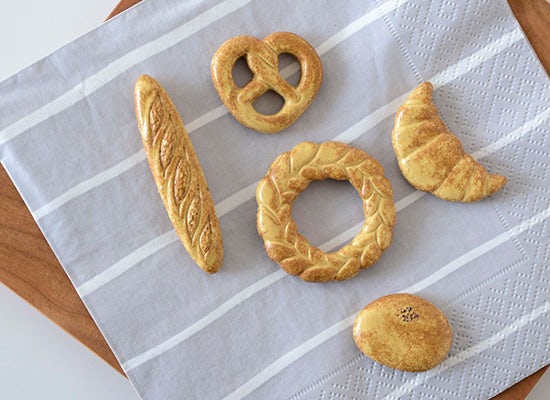 陶器作家・よしおかれいさんの「パン」をモチーフとした陶器のマグネットが、ただいま焼き上がりました♪
