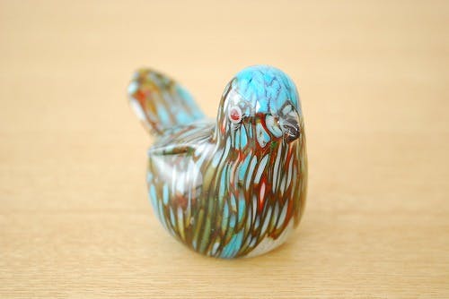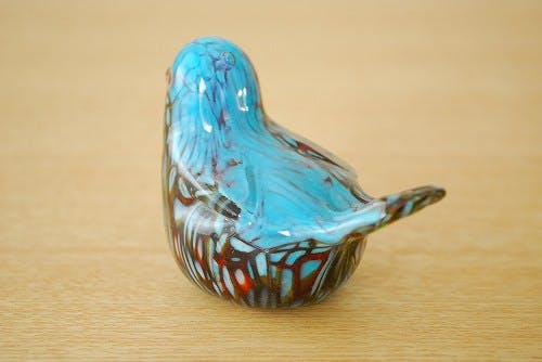 スウェーデンで見つけたガラスの小鳥オブジェ(マーブル模様)です。
