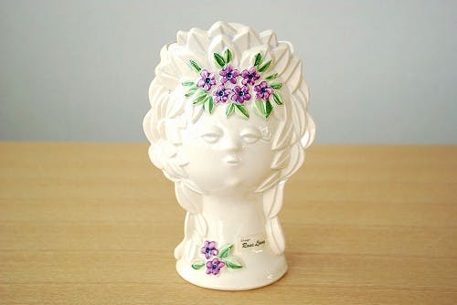 こちらは可憐な女性をかたどった小ぶりな花瓶になります。Mari Simmulsonの「美しい女性」を思わす、Rosa Ljungの女性像。こちらもまた花々を髪にあつらえていますね。くるんとしたまつ毛もすてきです。