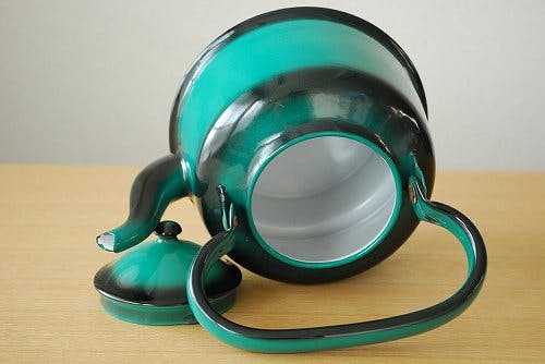 このがっしりとしたフォルムといい、黒とグリーンのグラデーションといい、どこかシックでかっこいい雰囲気のこちらのケトル。