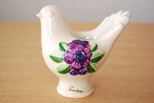 北欧は本当に鳥をモチーフにしたデザインが多いですが、こちらは特に乙女心をくすぐられるテイストのオブジェですね。胸にあしらわれた花模様がとても愛らしいです。
