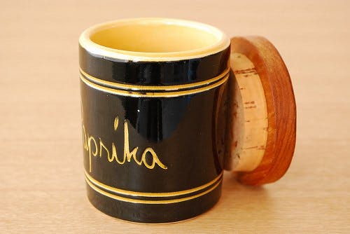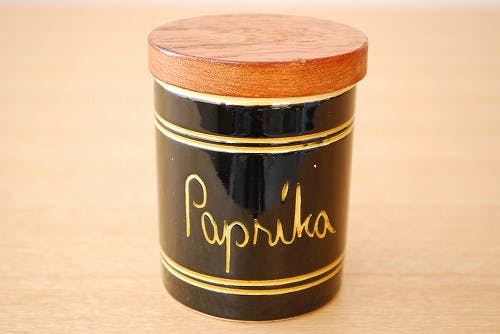 スウェーデンで見つけた木蓋付きスパイスポット(paprika/パプリカ)です。