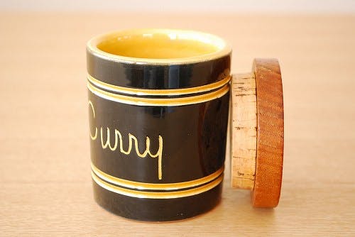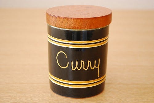 スウェーデンで見つけた木蓋付きスパイスポット(curry/カレー)です。