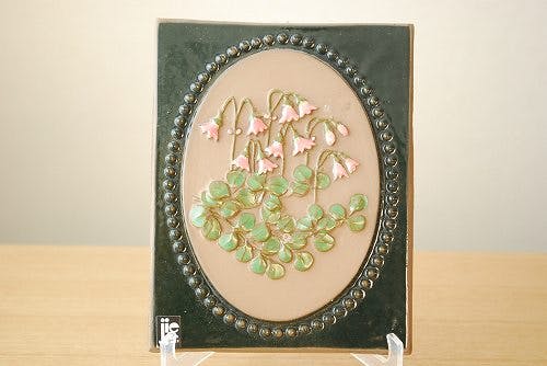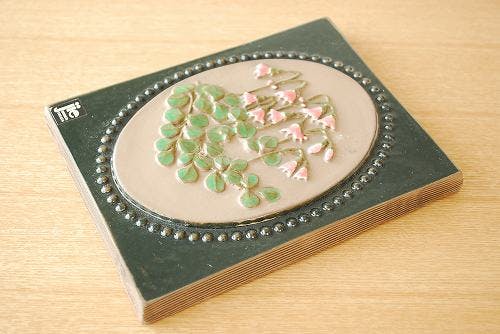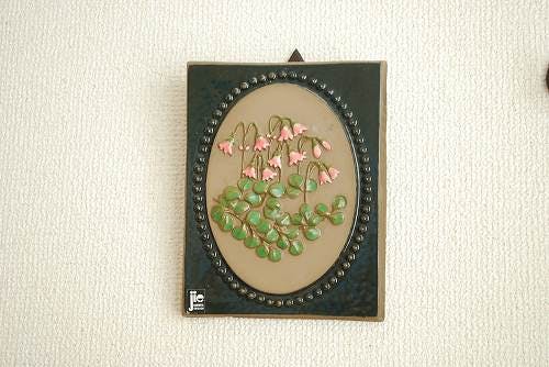 スウェーデンの釜、JIE Gantoftaの可愛らしい陶板の壁掛け(ピンクのお花)です。