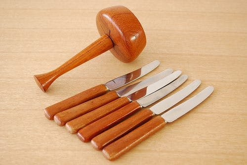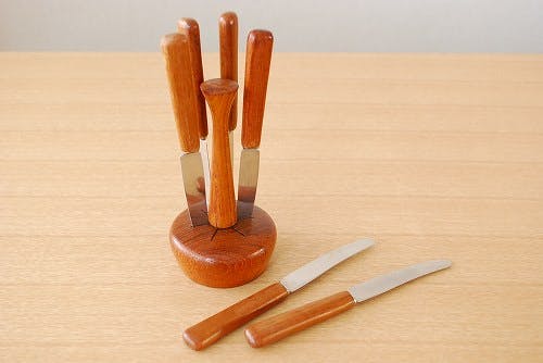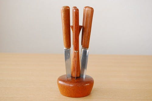 ナイフを全て外して、ナイフ挿しの台だけを眺めると、林檎のような可愛い形をしていて、そんな遊び心あふれるデザインはさすが北欧のものだなとつくづく感心させられます。