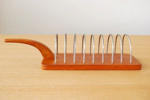 こちらは焼き立てのトーストのカリカリ感を保ちつつ、食卓にサーブするための優秀な道具です。時を経て味わいを増したチーク材とステンレスの組み合わせは北欧テイスト満点で、使わない時もどこかに飾って置いておきたくなるような雰囲気を合わせ持っています。