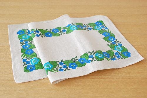 スウェーデンで見つけたテーブルランナー(ブルーのお花)です。