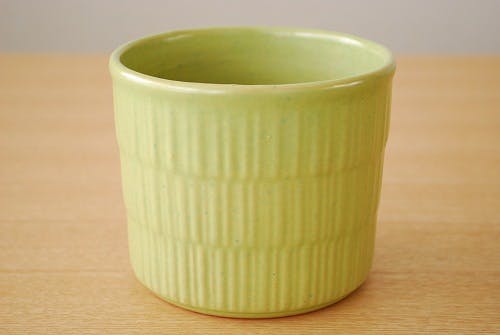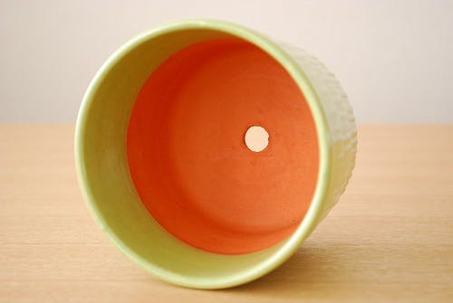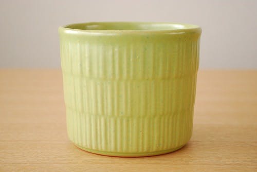 スウェーデンで見つけた若草色の陶器の植木鉢です。