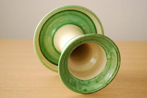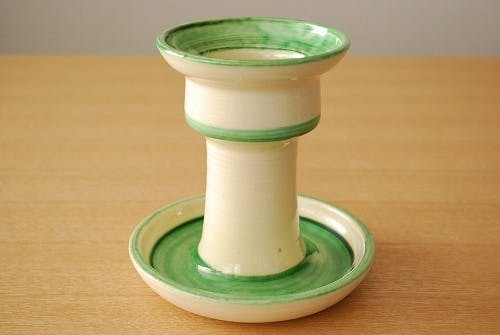 スウェーデンで見つけた陶器のキャンドルスタンド(グリーン&アイボリー)です。