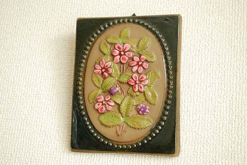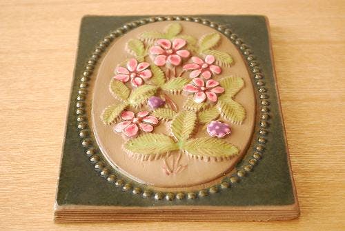 こちらの陶板もまた、シックな色合いの素朴な雰囲気の中にぽんとかわいいピンク色の小花モチーフの可愛らしさを兼ね揃えています。