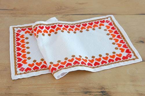 スウェーデンで見つけたテーブルランナー(ハート柄)です。