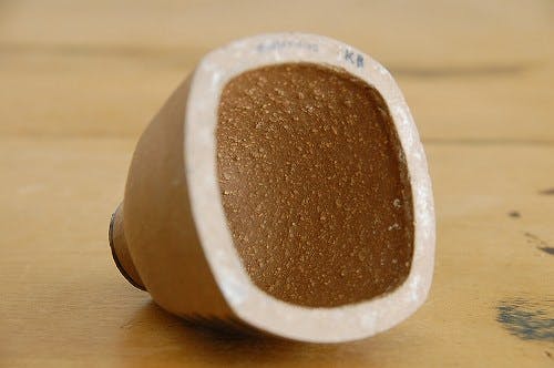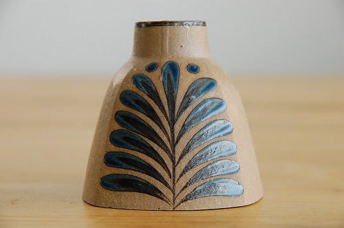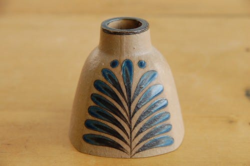 スカートの様な逆三角形型のフォルムに手描きでブルーの葉っぱ模様が描かれています。落ち着いた大人の雰囲気のこちら、キャンドルを立てたら一層部屋の雰囲気をすてきに演出してくれそうだと思いました。