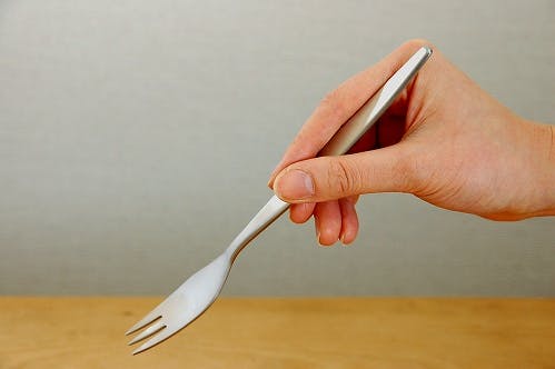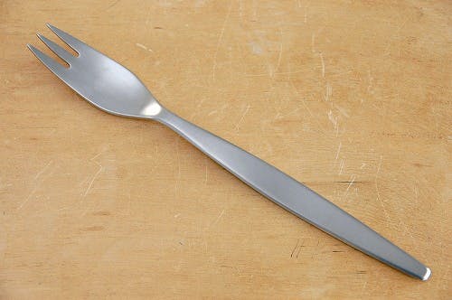 例えば、短い三角形をしたナイフは切るために必要な最低限の長さにとどめ、丸みを帯び先の尖った部分が短くなっているフォークは刺す以外にソースなどをすくうことも考えて作られました。そしてスプーンはサイドからも口に運びやすいようにデザインされそうです。
