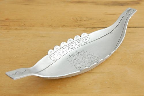 スウェーデンで見つけたバイキング柄のアルミ製ロングプレートです。